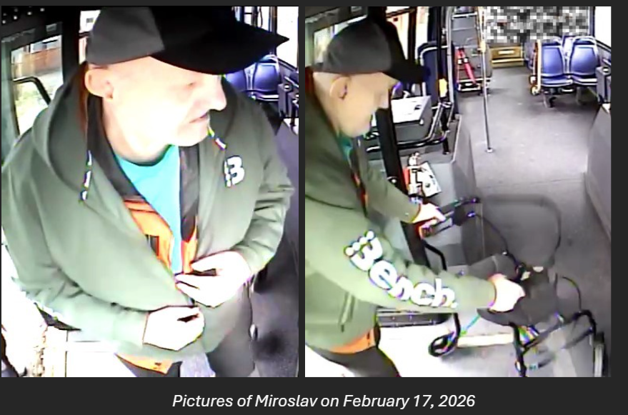 The 68-year-old was last seen on February 17, 2026 disembarking from a BC Transit bus at the Swartz Bay ferry terminal, around 3:10 p.m. Police believe he is attempting to make his way to Calgary, AB.